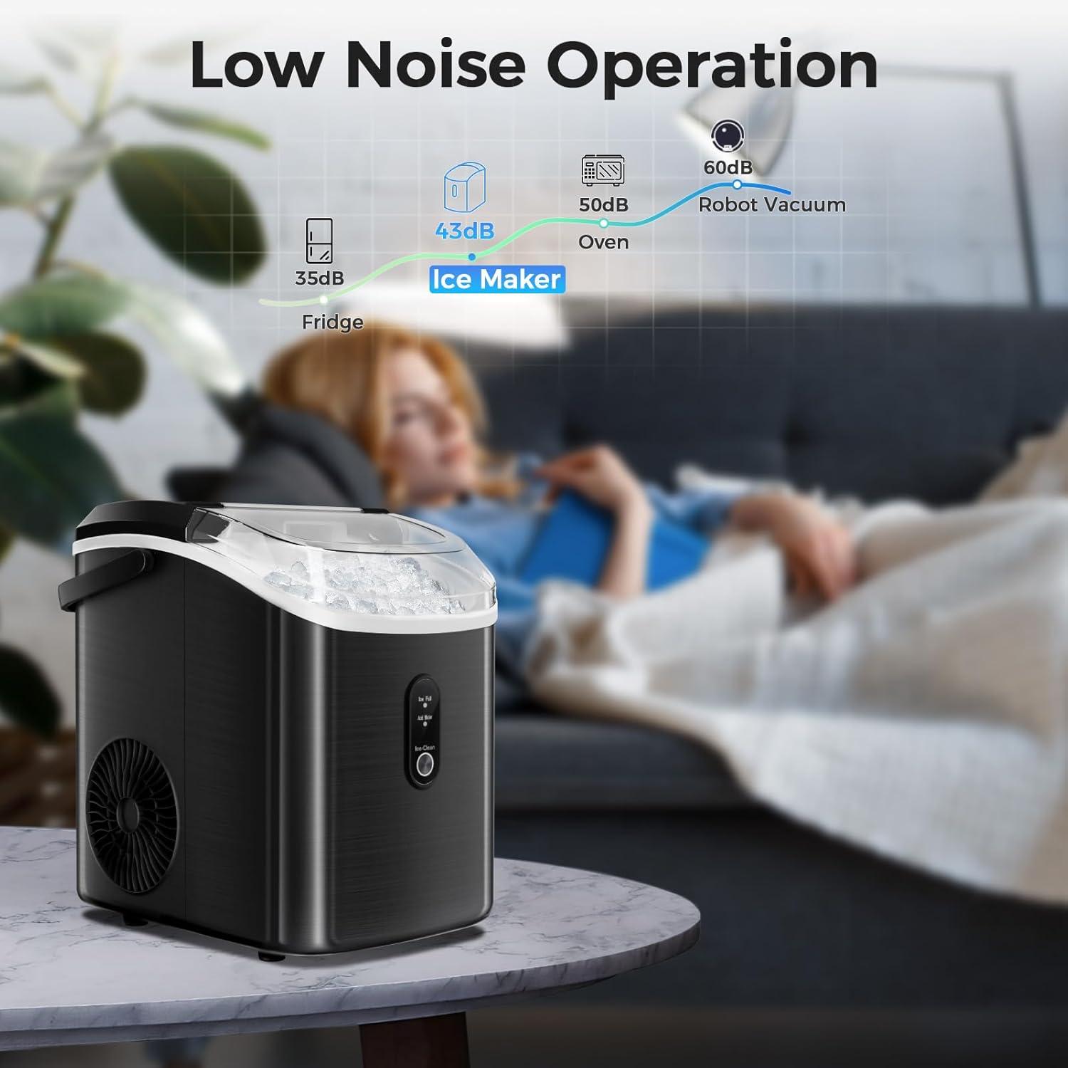 【Enjoy Chewable Crunchy Ice】The unique soft pellet ice won't hurt your hands or mouth, unlike those bullet ice and square ice, crushed nugget ice cube is made not only to cool down drinks fast but also to retain their flavor and providing a joyfully crunchy chewable experience.The melting speed and sense of experience of nugget ice is ideal companion for most frozen drinks.